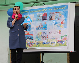 20 мая в нашем ДОУ прошло мероприятие "Ыраас уу - чэгиэн олох төрдө". На торжественную часть были приглашены: председатель совета депутатов с. Майя Федорова А.П. и заместитель директора по УВР начального звена МСОШ им. В.П. Ларионова Тихонова М.П. Антонина Петровна от лица администрации и депутов с. Майя выразила благодарность и пообещала содействие дальнейшему продвижению нашего проекта. Марианне Петровне был вручен эстафетный вымпел "Ыраас уу - чэгиэн олох төрдө", который они передадут следующей организации. После торжественной части, вручения вымпела и поздравительных номеров наших воспитанников на территории ДОУ было посажено 12 кустарников, а после все родители и работники вышли на уборку территории речки "Ытарҕалаах".